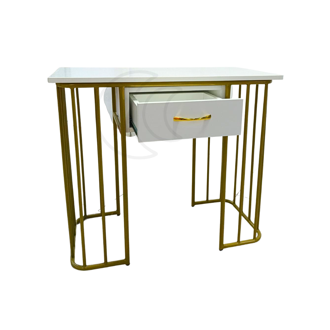 Mesa para manicure hecha con acero y melamina, con cajón.
